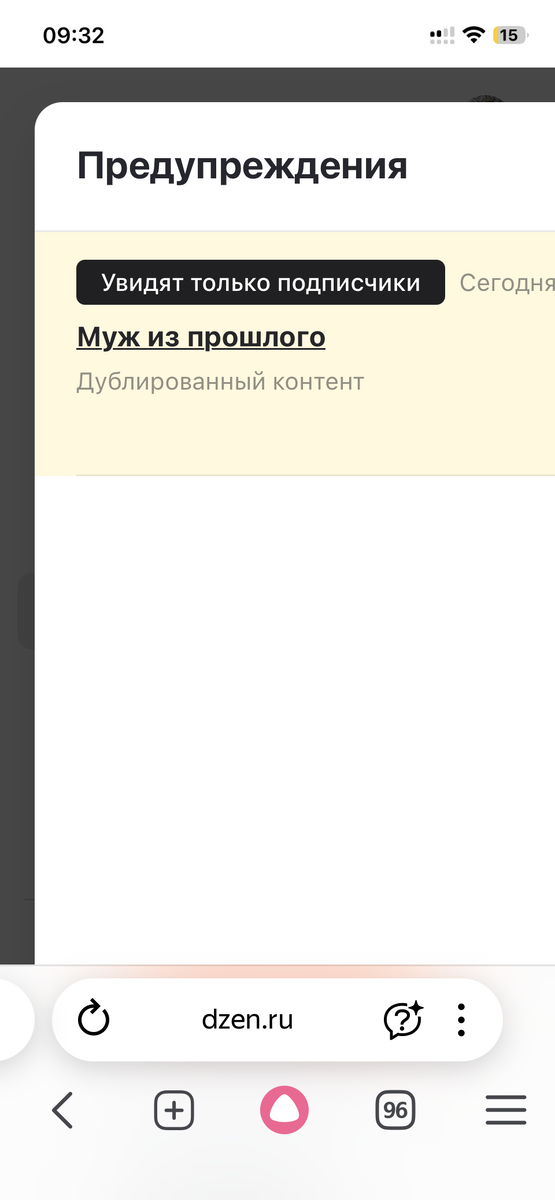 Иногда, самое интересное, Дзен зачем-то прячет вот в такую вот неприятную категорию. И тогда увидеть и прочесть это смогут только подписчики. Нет, не те, что уже купили Премиум подписку, а самые обычные. Новичкам это не увидеть никак, кроме как получив прямую ссылку. А где её взять? Нигде! Но я дам её вам в конце этой статьи🤫 Почему «дублированный контент»? Потому что эта часть повести была изначально в Премиум подписки. Но я решила ее открыть для всеобщего доступа. И, вуаля, контент стал «дублированным». Не нравится Дзену когда платное, с чего он получает деньги, бесплатно раздают. Ох, чуден Дзен в последнее время! Авторов загнал в угол и оплатой - теперь оплата только та, что вы платите, купив Премиум. Да и то, за вычетом комиссии Дзена и налогов. То есть примерно половину или треть от ваших платежей. Ну, а то, что вы читаете бесплатно, теперь и автор пишет бесплатно. Поэтому, как вы могли уже заметить, или пишет редко (как я), или отдал канал ИИ (искусственному интеллекту) и