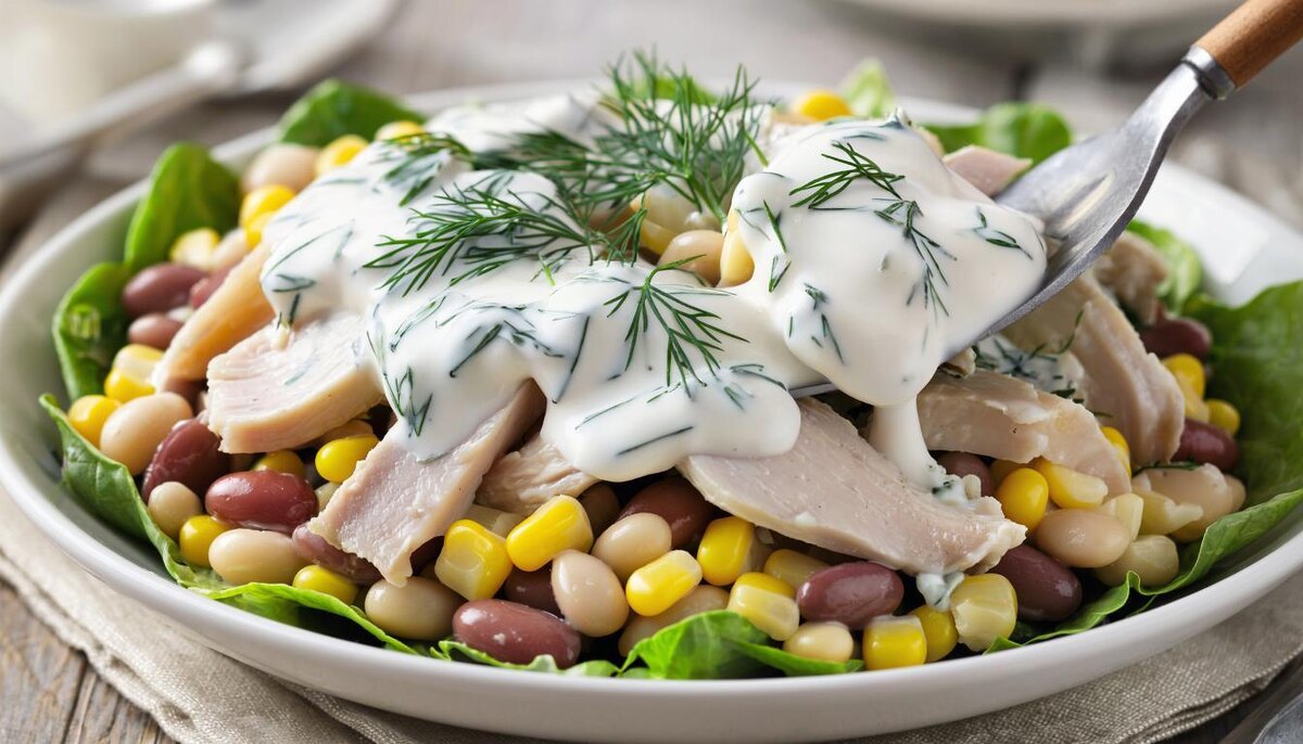 Новый год – отличный повод удивить гостей необычными блюдами. Если хочется добавить экзотики в новогоднее меню, попробуйте приготовить салат по-мексикански. Это яркий, вкусный и простой рецепт станет украшением Вашего застолья! Ингредиенты: Курица – 400 грамм (можно взять любую часть курицы) Копченный куриный окорочок – 1 шт. Болгарский перец – 1 шт. Чеснок – 2 зубчика Кукуруза консервированная – 1 банка Фасоль консервированная -1 банка Петрушка или кинза – 30 грамм Майонез – по вкусу Соль – по вкусу Перец черный молотый – по вкусу Масло растительное – 3 столовые ложки Приготовление: Разогреваем сковороду, добавляем растительное масло и обжариваем курицу на среднем огне до готовности (минут 15-20), остужаем и нарезаем кубиком. Копченый окорочок отделяем от кости и нарезаем кубиком. Зелень мелко нарезаем (можно взять или петрушку или кинзу или 50/50, зависит от того какая зелень Вам нравится). Болгарский перец отделяем от семян и так же нарезаем кубиком. С фасоли и кукурузы сливаем жид