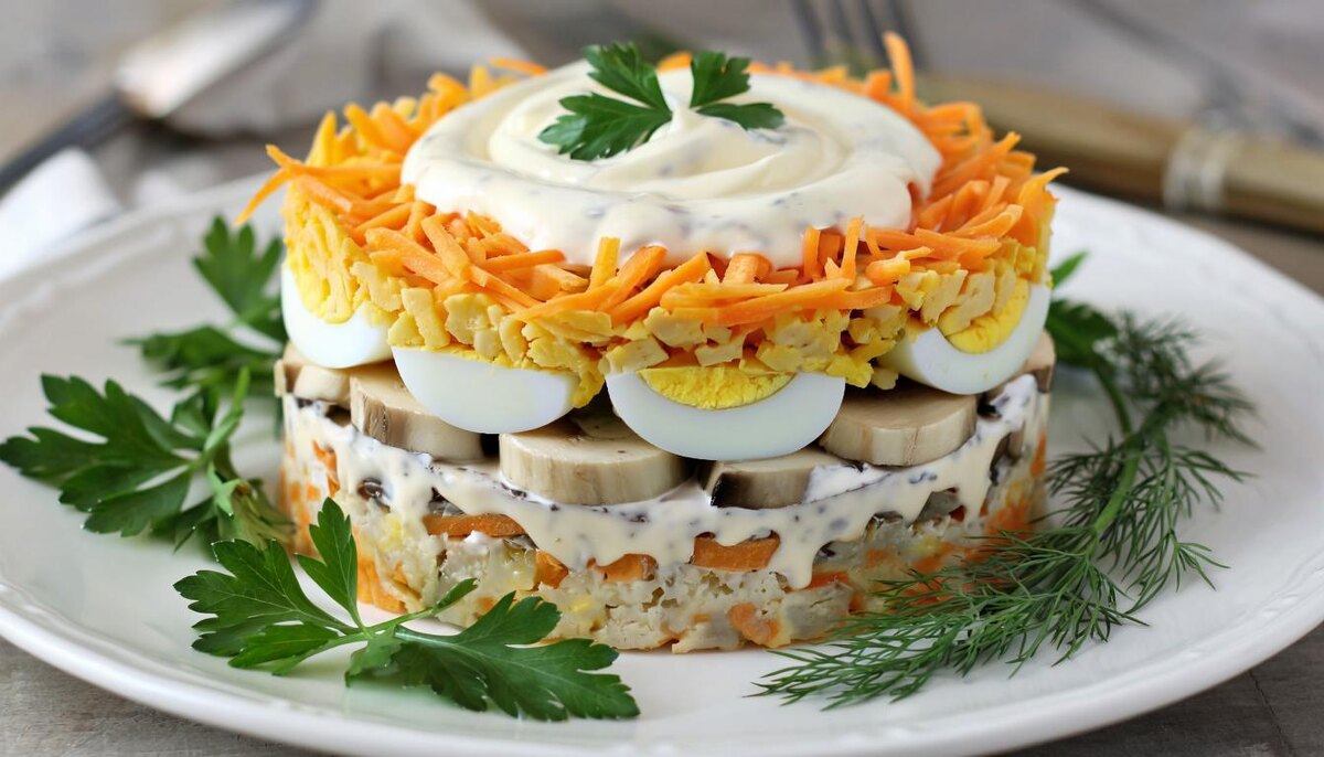 Салат грибной слоеный. Интересный вариант на новый год.