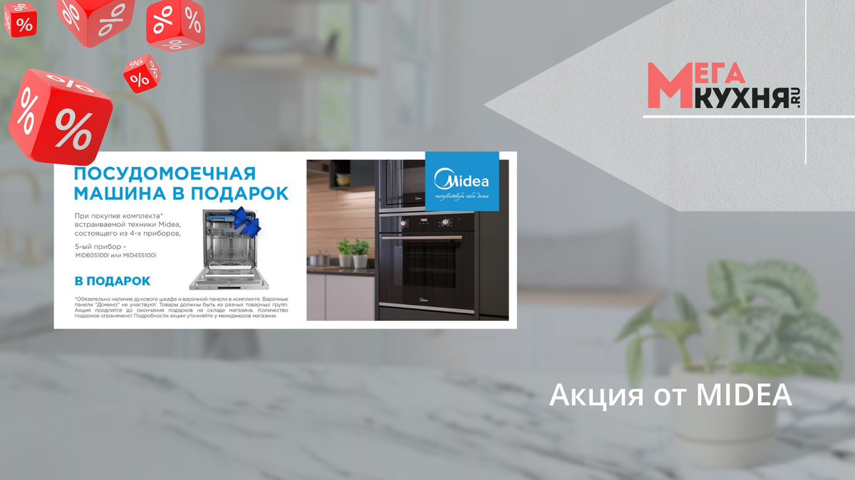 Сделайте свою кухню максимально удобной и стильной — вместе с техникой MIDEA! Только сейчас действует специальная акция: при покупке комплекта из четырёх единиц техники MIDEA вы получаете посудомоечную машину MID45S100I или MID60S100I — в подарок! 🎁 Вы сами выбираете модель посудомоечной машины — MID45S100I (узкая) или MID60S100I (стандартная) — в зависимости от пространства и предпочтений. с 6 октября по 31 декабря 2025 года, или до официального уведомления о её завершении. Не упустите шанс собрать идеальный комплект техники MIDEA и получить посудомойку в подарок! Современный дизайн, функциональность и немецкое качество — всё, что нужно вашей кухне. 📞 Подробности акции уточняйте по телефону: +7 (495) 135-00-13