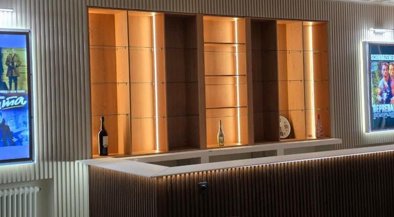 В загородном доме всё устроено по-другому. Здесь время течёт мягче, утро начинается с тишины, а вечера — с приглушённого света и спокойных разговоров. Каждый уголок, каждая деталь несёт в себе частичку уюта, ту самую «душу дома», которую невозможно купить, но можно создать. Именно с таким настроением мы работали над проектом стеллажей за барной стойкой в домашнем кинотеатре — пространством, где встречаются комфорт, стиль и личные истории. Домашний кинотеатр — не просто комната с экраном. Это место для друзей, для семейных вечеров, для того самого чувства «дома». Барная зона здесь выполняет особую роль — она собирает вокруг себя людей, наполняет пространство жизнью. А стеллажи за стойкой становятся её сердцем: они создают фон, атмосферу и настроение, делая интерьер законченным и живым. В основе конструкции — ЛДСП Дуб Корбридж Натуральный (Egger H3395 ST12). Мы выбрали этот материал не случайно: он обладает выразительной текстурой и мягким природным оттенком, который ассоциируется с тепл