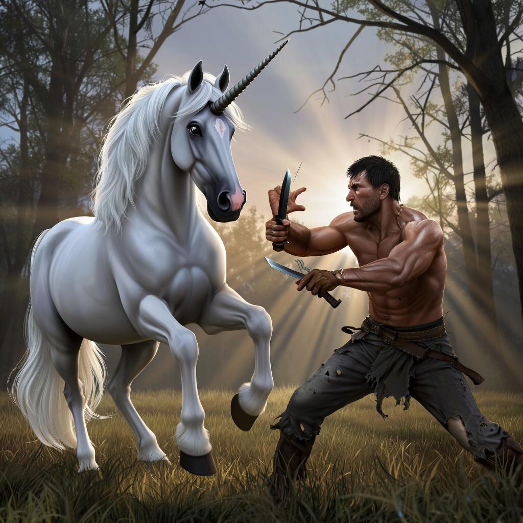 1 куплет *** ХожУ, брожУ во всех лесАх Уже который год. БывАл во многих я местах У речек и болот. *** Найти мечтаю дивный лес С благословЕния Бога. Поймать, как мне велел отец, Хочу единорОга. *** Припев *** Жизнь вечная меня манИт, И к ней ведёт дорога, Что на пути моём лежит Чрез кровь единорОга. Об этом всём я разузнАл В момент своей кручИны. Отец про всё мне рассказал Перед своей кончИной. *** 2 куплет *** Я устал и решил вздремнУть У опушки зелёный луг. Что ж, могу я чуть-чуть отдохнуть, Но земля проломИлася вдруг. *** Сомкнулся земляной навес, Не кончатся мытАрства Но вот возник Волшебный Лес, Что был в подземном царстве. *** Припев *** Жизнь вечная меня манИт, И к ней ведёт дорога, Что на пути моём лежит Чрез кровь единорОга. Об этом всём я разузнал В момент своей кручИны. Отец про всё мне рассказал Перед своей кончиной. *** 3 куплет *** Сквозь землю совершив нырОк, УзрЕл чуднЫЫх зверей. Средь них стоит единорОг — Цель моей жизни всей. *** Удар ножом, удар нещАдный — Устроил б