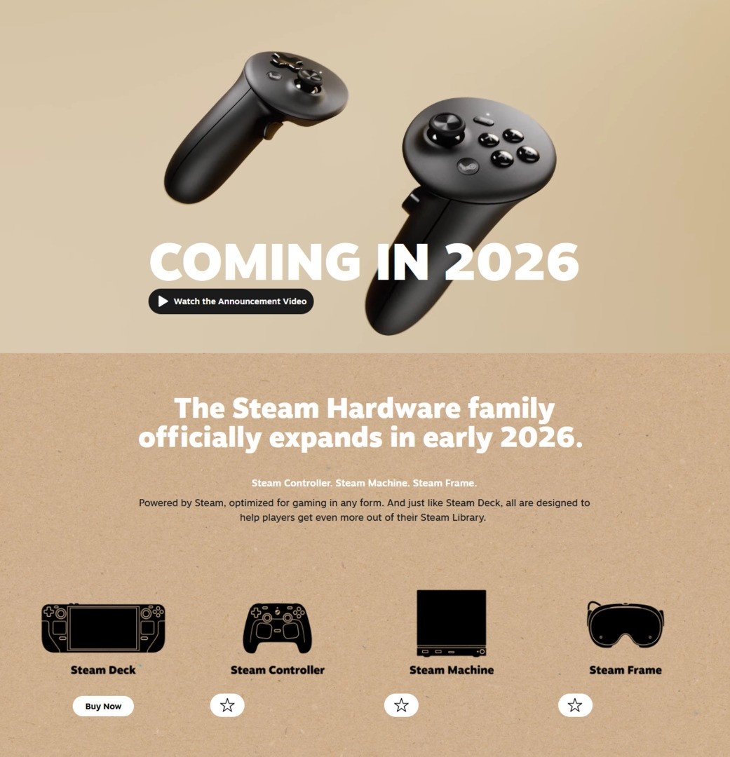 Компания Valve объявила о выпуске трёх новых устройств Steam Hardware, которые выйдут в начале 2026 года: Эти устройства формируют единую экосистему Steam, сочетающую игры на ПК, на ТВ и в VR. Valve делает вторую попытку занять нишу «ПК-игры на телевизоре», предлагая простое решение без сборки компьютера. Steam Frame — это шаг от Valve в сторону универсальной AR/VR-платформы, конкурирующей с Meta Quest и Apple Vision. Контроллер стал более универсальным и ориентирован на гибридное управление. Valve делает ставку на целостную экосистему устройств, аналогично Apple, Samsung и Meta: Такой подход повышает вовлечённость пользователей и создаёт удобную гибридную платформу «играй где хочешь». Анонс Steam Machine, Steam Frame и нового Steam Controller показывает, что Valve делает серьёзный шаг в сторону своей собственной аппаратной экосистемы.