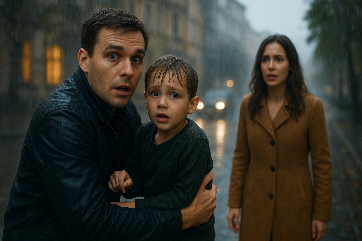 Михаил быстро среагировал: аккуратно поднял мальчика, оттащил его с дороги и защитил от дождя. Глаза ребенка были широко раскрыты и испуганы, но он был жив.