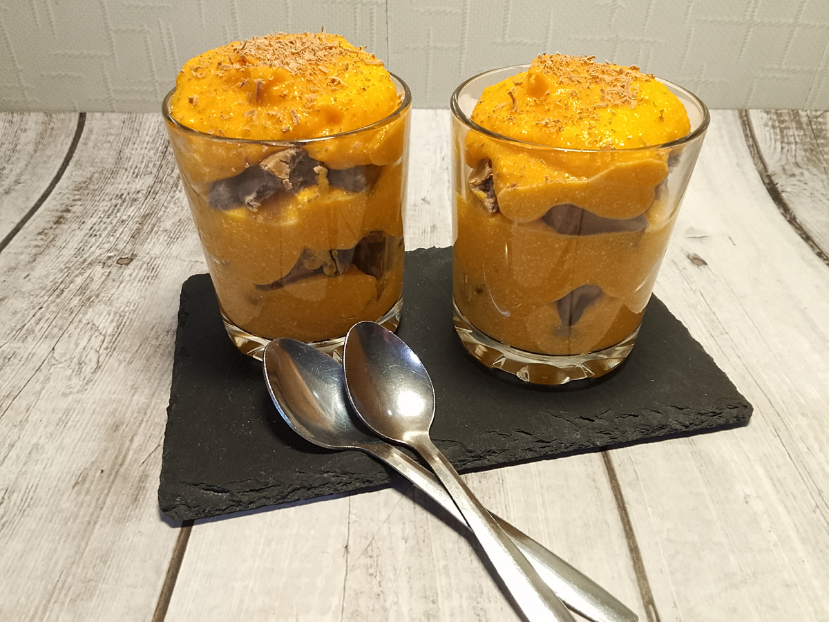 Трайфл из тыквы, творога, банана и шоколадных венских вафель