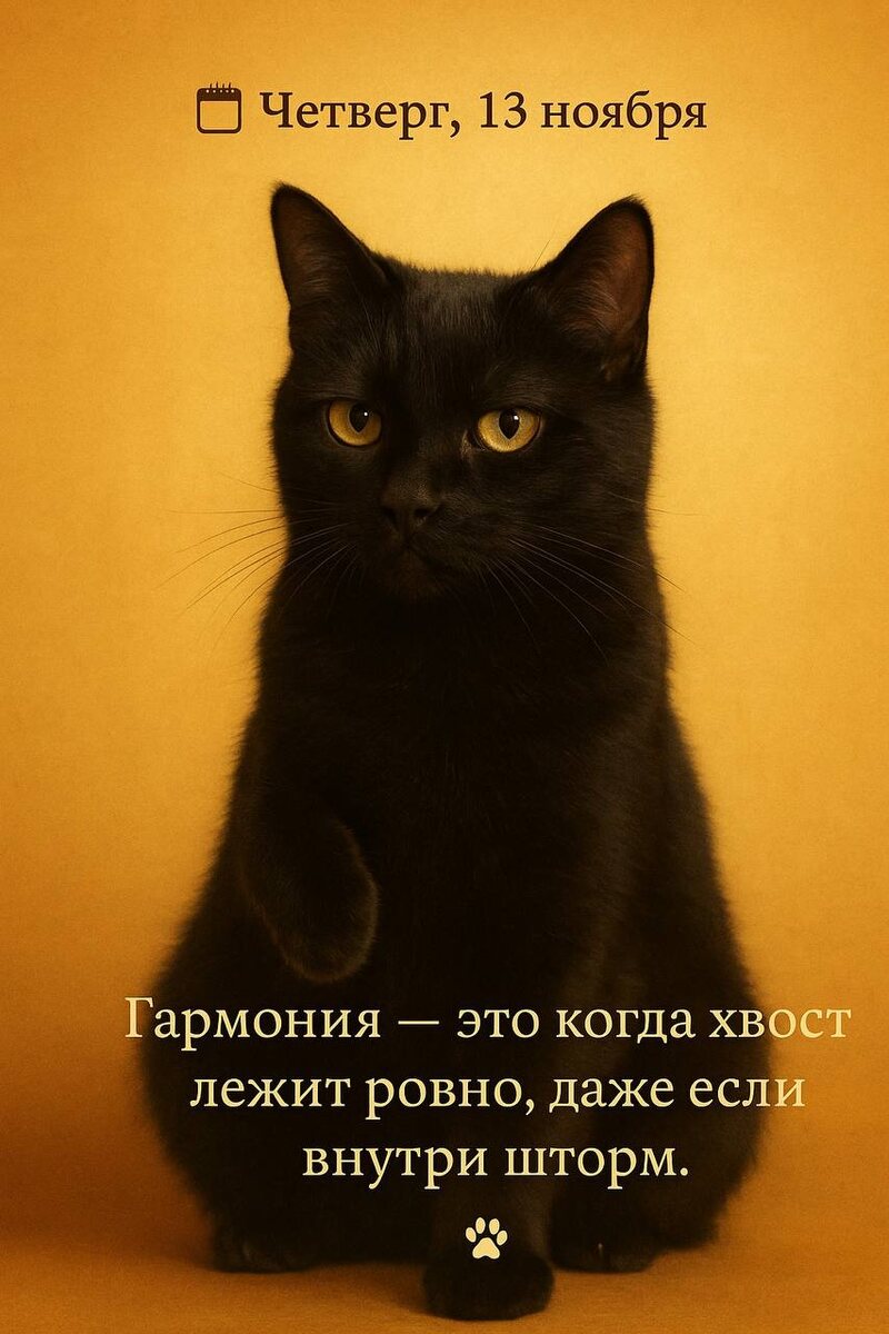 🗓 Четверг, 13 ноября Астропогода: Луна в Весах, день ищет равновесие. После рабочих вихрей приходит время мягкости и эстетики. Звёзды шепчут: «Делай красиво, даже если это просто завтрак». Главное — сохранять внутреннюю симметрию, а не угождать внешнему шуму. ♈ Овен: 💼 Не спеши — лучший результат рождается в паузе. 💞 Мягкое слово сегодня важнее громкого жеста. ☕ Белая кружка и чистая голова — формула ясности. ♉ Телец: 💼 День гармонии — доверься рутине, она лечит. 💞 Один честный разговор расставит всё по местам. ☕ Сладость утреннего кофе — твой баланс. ♊ Близнецы: 💼 Не прыгай с темы на тему — сосредоточься. 💞 Улыбка сегодня — лучшее послание. ☕ Воздух и свет — твои энергетики. ♋ Рак: 💼 Не бойся сказать «нет» — это тоже забота о себе. 💞 Кто-то готов тебя понять, если позволишь. ☕ Вода и покой помогут вернуть дыхание. ♌ Лев: 💼 Элегантность в действиях — твой лучший аргумент. 💞 Не путай внимание с признанием — ты и так светишься. ☕ Ваниль и утро — твоя сцена. ♍ Дева: 💼 Мелочи