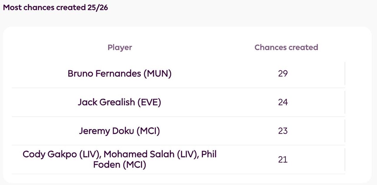 Бруну Фернандеш из "Манчестер Юнайтед" создал 29 голевых возможностей в этом сезоне Премьер-Лиги — больше всех 🔝