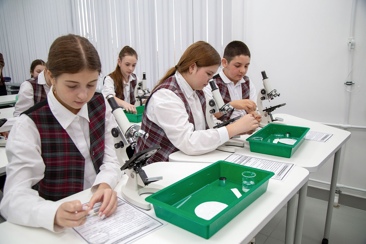 В отремонтированных помещениях появились интерактивные доски, цифровой трехмерный атлас, агродрон, симулятор зерноуборочного комбайна, роботизированная гидропонная установка, агролаборатории, мощные микроскопы, документ-камеры, раздаточный материал и многое другое. Такого в сельских школах раньше не было!