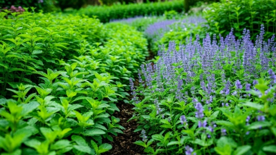 Котовник — схожий аромат, не так агрессивен. Мяту посадить только в контейнере или бочке, закопанной без доступа наружу.