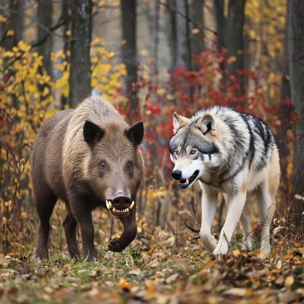 Дикие кабаны и серые волки являются двумя крупными животными, обитающими преимущественно в лесах Европы и Азии. Они обладают высокой выживаемостью в дикой природе. Столкновения между ними неизбежны. Цель данного исследования - проанализировать возможности диких кабанов успешно защищаться от нападения волков, учитывая физические особенности обоих видов. Анатомия и физиология Дикий кабан Кабан обладает крепким телосложением и мощными мышцами шеи и плеч, позволяющими ему быстро передвигаться по лесу даже при наличии густых зарослей или каменистой местности. Взрослый самец может достигать массы до 200 кг, а длина тела от 130 до 185 см. Верхние клыки у взрослых особей имеют длину около 6-7 см и выступают из пасти под углом примерно 45 градусов относительно плоскости черепа. Клыки служат мощным оружием для защиты от врагов. Кроме того, шкура взрослого кабана покрыта плотной щетиной и толстым слоем подкожного жира, способствующими защите животного от укусов противника. Подкожные мышцы такж