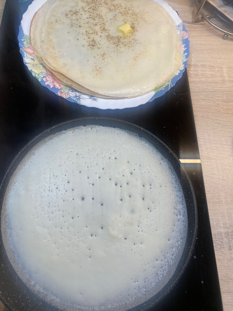 Вот ведь и не знала, всю жизнь люблю печь блины, а про налистники впервые услышала, ну как вот так ?) Подружка конечно сбила с толку, сказав что вместо муки надо крахмал, вот я и подумала, что новое блюдо, а тут просто блинчики тонкие.))) Вот так жизнь и учит всю жизнь, то одно узнаешь, то другое.) В этот раз блинчики делала на козьем молоке, соседушка поделилась. Блинчики соседушке тоже перепали, она любит мои да и не мои тоже ))) Сама не любительница печь, да и я бы не пекла если бы не мама и не внуки ) Пошла делать налистники, мама спит, а я шуметь ))) Ну а что делать, она сама выбрала ту комнату , потому что раньше ночевала как гостья, да так и осталась тут жить, где у меня находится кухня- гостиная. А когда она ночевала как гостья, то никогда не спала так долго как сейчас чуть ли не до обеда. Мне конечно не нравится сонное царство, но ничего не поделаешь, надо как то смиряться и с этим. Чем дольше мама спит, тем лучше силы восстанавливаются у неё, так что всё к лучшему. С утра я