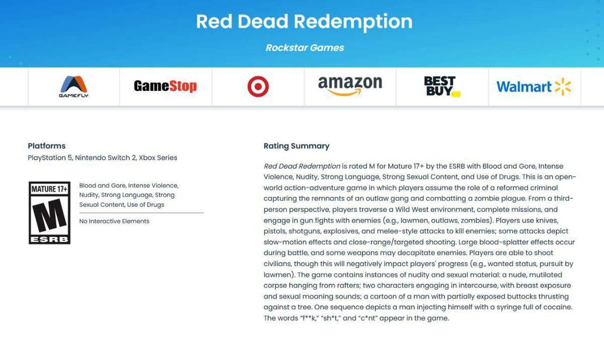 Red Dead Redemption получила рейтинг ESRB для PS5, Xbox Series и Switch 2 — вероятно, готовится полноценный релиз на этих платформах.