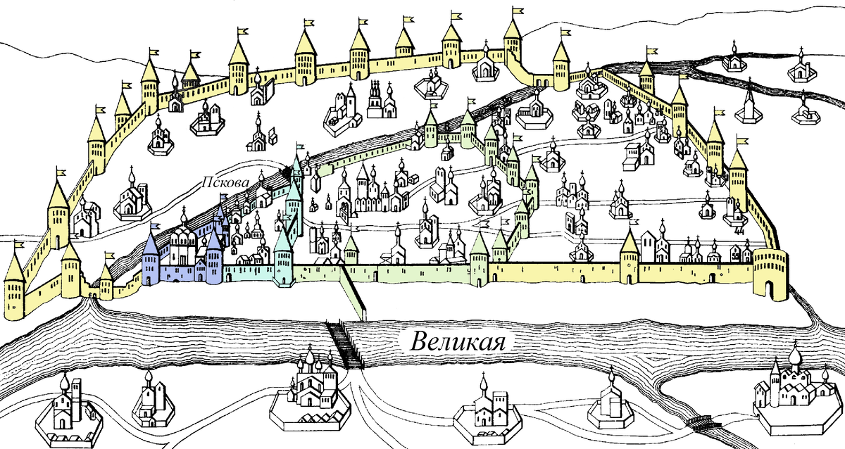 Псков изначально оказался на очень неудобном месте, если смотреть глазами военного. С одной стороны — река Великая, по которой можно поднимать войска и флот. С другой — близость к западным рубежам, откуда в Средние века приходили самые опасные противники: рыцари Ливонского ордена, немецкие города, позже шведы и польско-литовские войска.