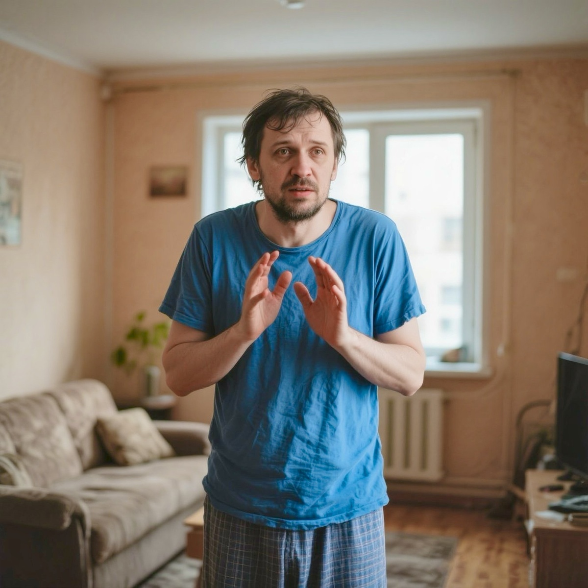 Ирина открыла глаза. Посмотрела на потолок — там, в углу, паутина, давно пора убрать. Потом перевела взгляд на мужа. Валера стоял в домашних штанах и растянутой футболке, которую она стирала позавчера. Немытые волосы, щетина трёхдневной давности. На животе — небольшой, но заметный валик, которого не было год назад.