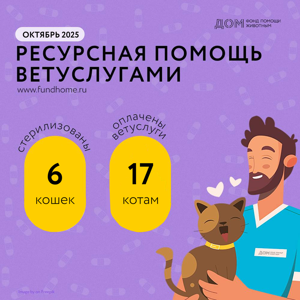 В октябре в рамках программы «Ресурсная помощь кураторам животных ветеринарными услугами» фонд «ДОМ» помог с лечением, закупкой лекарств и стерилизацией нескольким хвостикам: - кошкам Кате, Симе и Мусе - кошке Полыни - 10-ти котикам из частного московского приюта - коту Рыжему - котикам Ониксу, Веде и Мистике - коту Маркоше - котёнку Флаффи - кошке Сахаре Всего на помощь этим замечательным хвостикам были направлены 137 641 рубль. А теперь расскажем подробнее про каждого из них 🙃 🐱🐱🐱Кошки Катя, Сима и Муся жили в черной московской квартире, кроме них там содержались ещё 10 кошек, постепенно мы будем помогать всем им со стерилизацией. 🐱 Кошка Полынь была подброшена к московскому собачьему. Мы помогли со стерилизацией, теперь кошечка ищет дом. 🐱Котик Серёга — бывший житель московского двора, мы помогли ему пройти процедуру кастрации. 🐱Котика Рому вместе с братом подкинули в ветеринарную клинику, один из них сразу же нашел дом, а второй уехал на передержку, куда без кастрации н