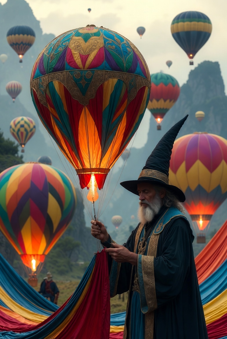 В одном из параллельных миров живет-бывет один старец-волшебник в причудливом узорчатом одеянии-мантии. Он изготовил себе ее сам. И расписал красивым рисунком из завитков. У него интересная работа. Он занимается "расправлением парашютов" и готовит их к взлету. Парашюты - это такие уплотненные тяжеленькие заплечные чемоданчики-рюкзачки скарба программ, блоков, сложностей, которые несёт за своей спиной каждый человек. Но если их хорошенько обслужить, они разворачиваются в парашюты-воздушные шары, запускающие их обладателя в красивый полет. Но им нужно уделить внимание. Очистить от грязи и пыли, "разлепить" слежавшиеся складочки даров, талантов, ресурсов и индивидуального кода, "согреть" огнем и дыханием, и тогда парашют разворачивается-расправляется в прекрасный шар с завораживающим узором и начинает подниматься и отрываться. И с утра до вечера старичок-волшебник занимается подготовкой шаров к запуску и "взлёту" и наблюдению за парением. Увеличением емкости и грузоподьемности ша