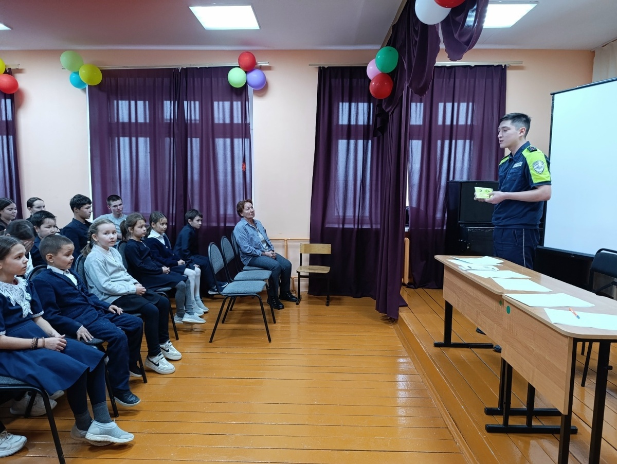 Инспектор ДПС В.З. Фатхуллин провел профилактическую беседу "Безопасная дорога". Также инспектор рассказал учащимся о том, как правильно вести себя на дорогах, пешеходных переходах, рассказал о светоотражателях и необходимости их использования. Также он отметил о правилах вождения на мопедах, мотоциклах. Руководитель отряда ЮИД Исинбаева У.З подготовила и раздала классным руководителям 2-9 классов буклеты с правилами поведения на дороге для изучения на классных часах.