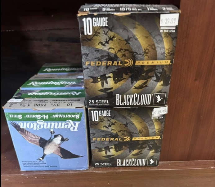 Ребята обратите внимание на цену 10 калибра-видно что пачки затертые редкий сейчас конечно "размер" но в Америке и Канаде есть любители из винтажных ружей поохотить гуся именно 10 калибром.