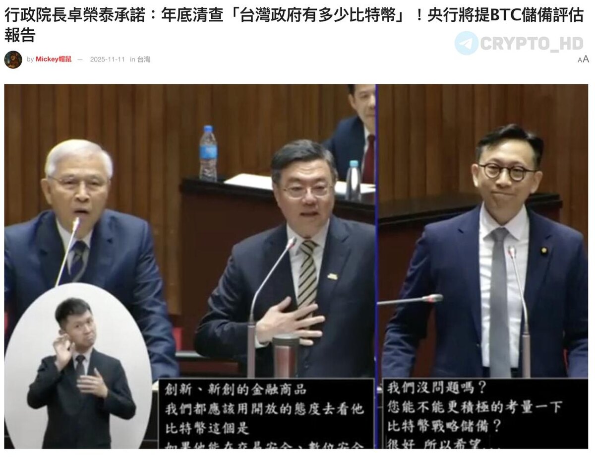 🇹🇼 В Тайване планируют создать стратегический BTC-резерв. На финансовом заседании в парламенте страны два ключевых ведомства, Исполнительный Юань и ЦБ Тайваня, заявили о подготовке оценки возможности включения BTC в национальные резервы. ➤ Правительство готовит отчет о фактическом объеме изъятых государством BTC. ➤ Эти BTC предложено использовать как стартовый источник для анализа: продавать или держать. ➤ Центробанк до конца года опубликует полный доклад «за» и «против» включения BTC в стратегические запасы. ➤ Депутаты критикуют чрезмерную зависимость резервов от доллара и гос. облигаций США. Crypto Headlines