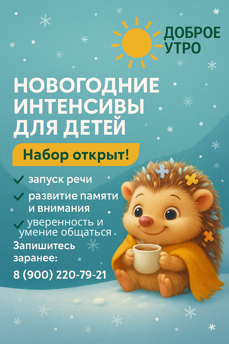 Современные родители всё чаще ищут быстрые и эффективные способы помочь ребёнку: улучшить речь, справиться с тревожностью, исправить осанку или повысить успеваемость. Но занятия раз в неделю редко дают быстрый результат — ребёнку просто не хватает регулярности и системности. Поэтому в Медицинском центре комплексной диагностики и коррекции «Доброе утро» работают уникальные коррекционные интенсивы, которые дают заметный эффект всего за 10–14 дней. И сейчас самое важное — открыт набор на январскую группу. Старт — 2 января.