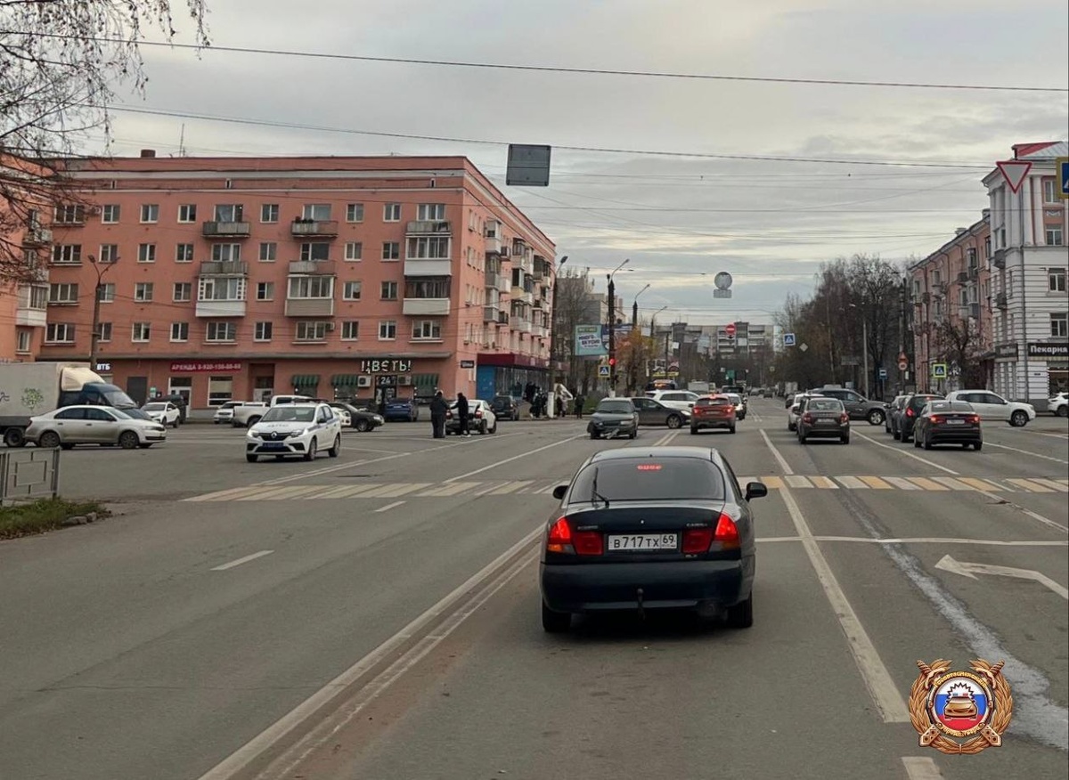 В Твери на перекрестке столкнулись два автомобиля, пострадала женщина