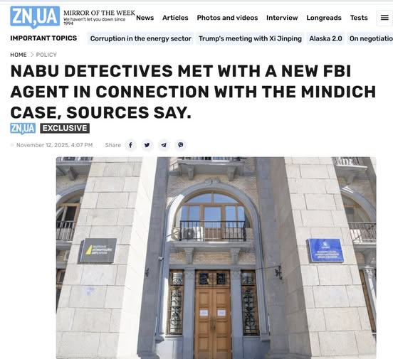 НАБУ, которое пошло против дружков предводителя копателей древних морей, является доверенным лицом США: "Детективы НАБУ встретились с новым агентом ФБР в связи с делом Миндича, сообщают источники. Вчера детективы Национального антикоррупционного бюро У встретились с новым сотрудником ФБР, который координирует сотрудничество во всех расследованиях НАБУ. На этот раз заседание конкретно касалось дела Тимура Миндича, обвиняемого в операции «Мидас», совместной операции НАБУ и САП. Стало известно, что недавно состоялась последняя плановая ротация американского представителя (такие изменения происходят каждые 4-6 месяцев), и в Куив прибыл новый офицер Федерального бюро расследований США. Одна из первых его рабочих встреч с детективами была именно по делу Миндича. Представитель ФБР постоянно работает в НАБУ по межведомственному меморандуму, подписанному при создании Бюро. У него свой офис в здании НАБУ и ежедневно общается с детективами, в курсе всех расследований, особенно громких дел о кор