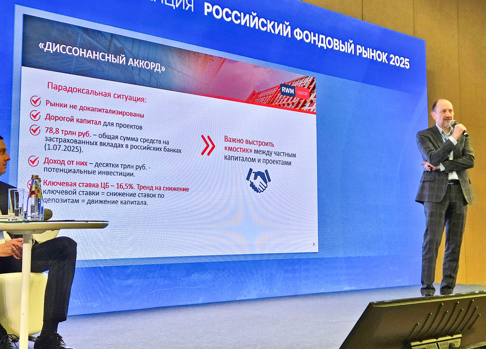 Генеральный директор Инвестиционной группы «РВМ Капитал» Феликс Блинов на конференции НАУФОР в Екатеринбурге рассказал о перспективах проектов Sale&lease back. В частности он отметил, что сегодня в условиях высокой недокапитализации экономики крайне важно найти пути, по которым капитал частных инвесторов сможет зайти на эти рынки. Сегодня мы видим, что бизнес истощил свои «накопленные запасы», которые постепенно тратил в ожидании снижения ключевой ставки после ее стремительного взлета. Но быстрого снижения, как это было в период пандемии, не произошло, и в итоге рынок начинает сталкиваться с ухудшением балансов компаний, сложной реструктуризацией кредитов, дефолтами и т.д. В результате возникает противоречие — деньги на банковских депозитах есть, но в экономику они не идут. Этот «диссонансный аккорд» требует разрешения, — сказал Блинов. Спикер отметил, что лейтмотивом практически каждой конференции сегодня становится тема перетока этих почти 80 трлн руб. капитала частных инвесторов с б