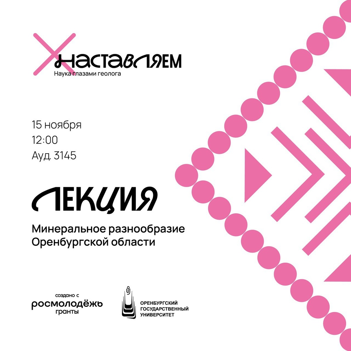 Наш регион — это настоящая шкатулка с геологическими сокровищами 🤩 15 ноября тебя ждёт увлекательное путешествие в мир геологии вместе с проектом «Наставляем: наука глазами геолога». Приходи на лекцию о минеральном разнообразии Оренбургской области. Здесь доцент Института наук о Земле ОГУ Александра Пантелеева расскажет все от всемирно известных орских яшм и уникальных гипсовых роз до редких минералов, которые больше нигде в России не встречаются. Как формировались эти богатства миллионы лет назад и что могут рассказать минералы о древних морях и вулканах на территории современного Оренбуржья? Ответы близко! 📌 Проект реализуется при грантовой поддержке Федерального агентства по делам молодежи (Росмолодежь). #ОГУ #в_ОГУ #OSU #Росмолодёжь #РосмолодёжьГранты