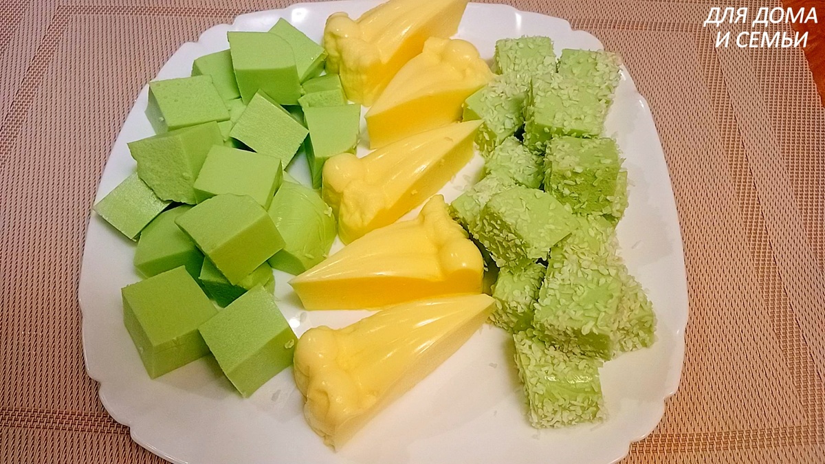 Вода - 300 мл Нам понадобится 300 мл воды, кипяток. Высыпаем в него две пачки желе и хорошо размешиваем до полного растворения желе отставляем в сторону минут на 10-15, чтобы немного остыл. Также делаю десерт ещё одного цвета. После этого в желе добавляю 200 г творога. И всё хорошо перебиваю погружным блендером до однородной массы, чтобы не было комочков творога. Подготавливаем заранее форму. Смазываем небольшим количеством подсолнечного масла без запаха и переливаем в неё нашу творожную массу. Убираем в холодильник до полного застывания. Также можно готовить и в стеклянной форме, железной или пищевом контейнере. Нужно застелить предварительно пищевой плёнкой, смазывать ничем не нужно. И убираем минимум на 2 часа в х