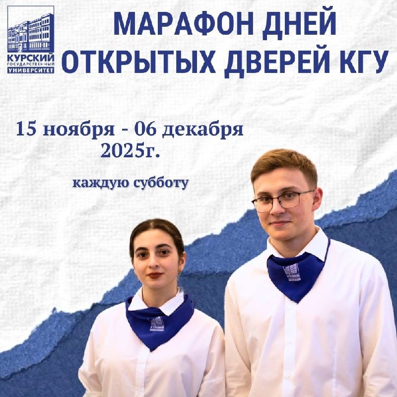 Ваш ключ к будущему начинается в КГУ ✨ Дорогие абитуриенты, родители и учителя! Приглашаем вас на марафон дней открытых дверей Курского государственного университета — уникальную возможность заглянуть в мир высшего образования и найти свой путь к успеху! Когда? С 15 ноября по 6 декабря 2025 года — каждую субботу. Что вас ждёт? ✓ подробная информация о КГУ и правилах поступления ✓ личные встречи с деканами факультетов и ведущими преподавателями ✓ возможность увидеть учебные аудитории, лаборатории и зоны отдыха ✓ знакомство с кафедрами и направлениями подготовки ✓ интерактивная программа ✓ памятные сувениры и фото на память Принять участие просто! 🎓 Переходите по ссылкам и регистрируйтесь: ✓ 15 ноября https://forms.yandex.ru/u/6912e18749af4720ade76519 ✓ 22 ноября https://forms.yandex.ru/u/6912e7c9e010db89a33f34b6 ✓ 29 ноября https://forms.yandex.ru/u/6912e7d8505690af172c5c41 ✓ 06 декабря https://forms.yandex.ru/u/6912e7e4505690af682c5c30 Следите за обновлениями в наших социальны