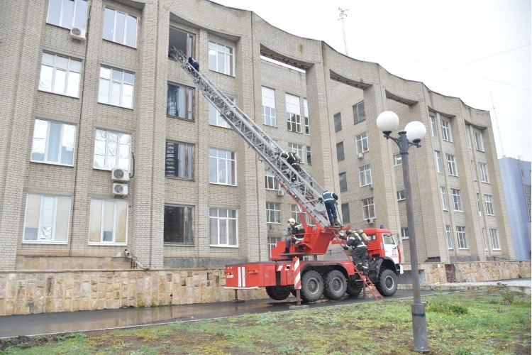 В здании Балаковской администрации накануне прошли тренировочные пожарно-тактические учения. Согласно легенде, пожар вспыхнул в гараже на минус первом этаже здания администрации. Из-за задымления смежных помещений и коридоров сработала пожарная сигнализация, и охранник, заметивший дым по камерам, сразу же позвонил на пульт ЕДДС. Она оперативно оповестила все городские службы Одновременно сотрудники администрации также связались с пожарной службой «01». До прибытия пожарных расчетов административный персонал успешно эвакуировал большинство сотрудников из здания в безопасное место, однако несколько человек не успели покинуть свои кабинеты и оказались заблокированы в разных частях здания. Прибывшие огнеборцы провели разведку в задымленных помещениях, используя аппараты защиты органов дыхания. В ходе разведки на четвертом этаже были обнаружены «пострадавшие», которых затем эвакуировали из здания с помощью автолестницы. - Осмотрите пятый этаж и спускайтесь, - передал по рации спасателю нача