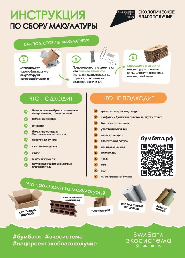 🌳Сразу две ЭКОАКЦИИ пройдут для жителей округа Пушкинский 25 ноября: ♻️по сбору отработавшего электронного и электрического оборудования в рамках федеральной экологической программы «Школа утилизации: электроника», ♻️по сбору макулатуры Всероссийской акции «БумБатл». На утилизацию принимается техника: ➖компьютерная, бытовая и офисная, электроинструмент, научная и медицинская техника, телефоны и персональные гаджеты, электронные и электрические игрушки На утилизацию НЕ принимаются: ❌люминесцентные лампы, источники бесперебойного питания, батарейки. На переработку принимается макулатура: ➖белая и цветная бумага, бумажные пакеты, открытки, картон, оберточная бумага, книги, газеты и журналы. На переработку НЕ принимается: ❌грязная и мокрая макулатура, упаковки из-под яиц, салфетки, бумажные салфетки и втулки от них, фотографии, чеки, обои, ламинированная бумага. С подробной информацией о проведении акции можно ознакомиться на сайте https://eko-fond.ru/electronics/ и https://бумбатл.