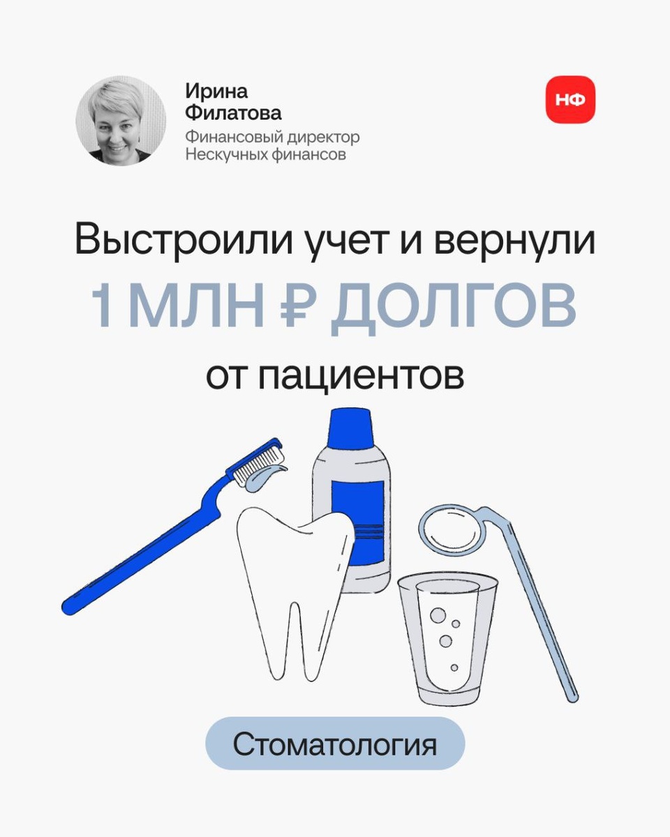 🫥 Разгадали тайну потерянных 2 млн ₽ выручки Стоматология с оборотом 80 млн ₽ работала стабильно: запись на месяцы вперед, поток клиентов, сильная команда. Собственник обратился в Нескучные, чтобы просто собрать управленческий учет. Но когда финдиректор разобрала отчеты, выяснилось: часть выручки не фиксируется, пациенты должны 4 млн ₽, а бухгалтерия сопротивляется изменениям. В карточках — как навели порядок и вернули клинике деньги 🎉 ➡️ А как дела в вашем бизнесе? Приходите на бесплатную диагностику семи сфер управленческого учета и узнайте, как безопасно расти.