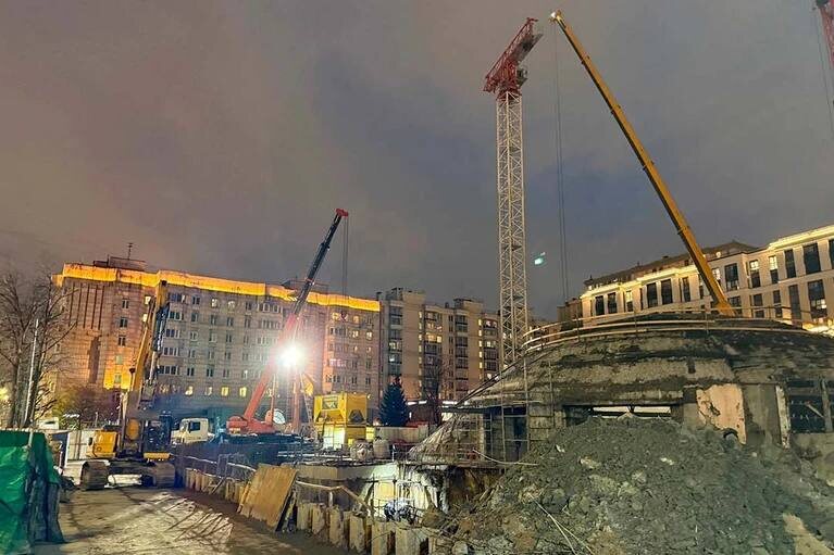 🚇 На строительстве нового вестибюля станции метро «Фрунзенская» установили кран