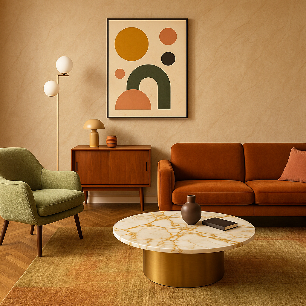 Ретро-фьюжн - не просто ностальгия. Это танец прошлого и настоящего, где классические формы встречаются с современными материалами, а настроение диктует не эпоха, а вкус. Если бы этот стиль был человеком, он, скорее всего, слушал бы винил, пил кофе из бокала для шампанского и при этом уверенно пользовался смартфоном. Что такое ретро-фьюжн Это стиль, в котором объединяются черты 50-х, 60-х и 70-х, но в современной интерпретации. Он не стремится скопировать эпоху, а он играет с ней. Вместо старой мебели - переосмысленные формы. Вместо вычурности - лёгкость и ирония. Ретро-фьюжн - когда бархат соседствует с глянцем, а пастельные тона спокойно делят пространство с неоном. Главное правило: свобода микса. Можно поставить рядом кресло в духе «Модерна» и лаконичный металлический торшер, и они не поссорятся. Цвет и настроение Ретро-фьюжн любит цвет, но не хаос. Он играет с палитрой, как джазовый музыкант - импровизируя, но всегда в ритме. Тёплые тона: терракотовый, горчичный, оливковый, пригл
