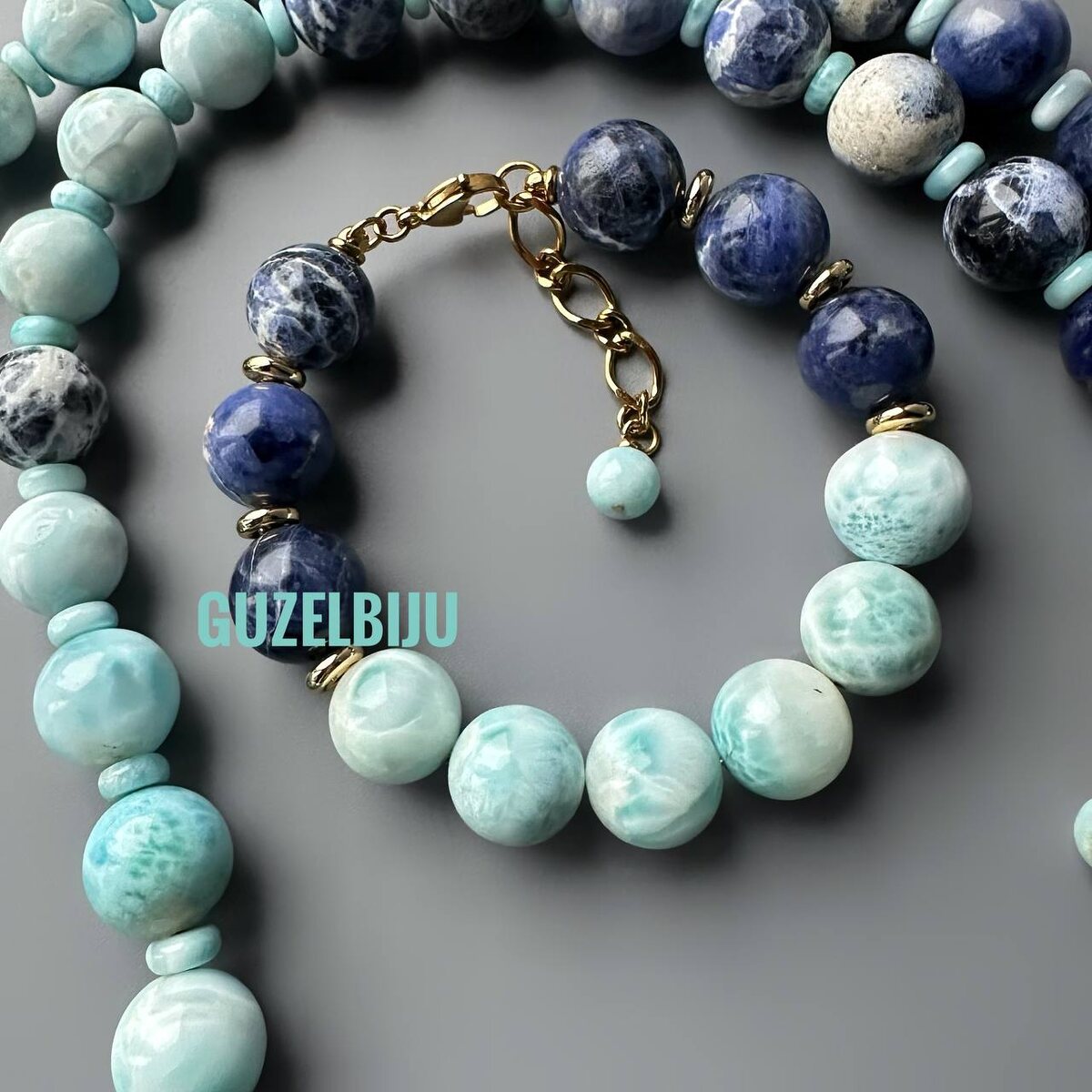 Когда рука не поднималась ставить на фото свои эти GUZELBIJU… в наше время воруют фото работ, потом выдают за свои. Еще не умею правильно клеймить поверх изображения… эстеты, прошу вас простить, это просто мера безопасности… куда деваться… Ну, а я вам представляю комплект, который никогда не думала что сделаю… честно я испытывала массу эмоций, когда через мои ручки прошли эти камни… натуральный ларимар и содалит. Ни одного корректирующего момента… украшение как есть… Видео запишу и отправлю свою деточку 😢 к настоящей маме♥️… на долгие годы… с настоящими чувствами сделанную работу. Много сложностей было, о них в видео…