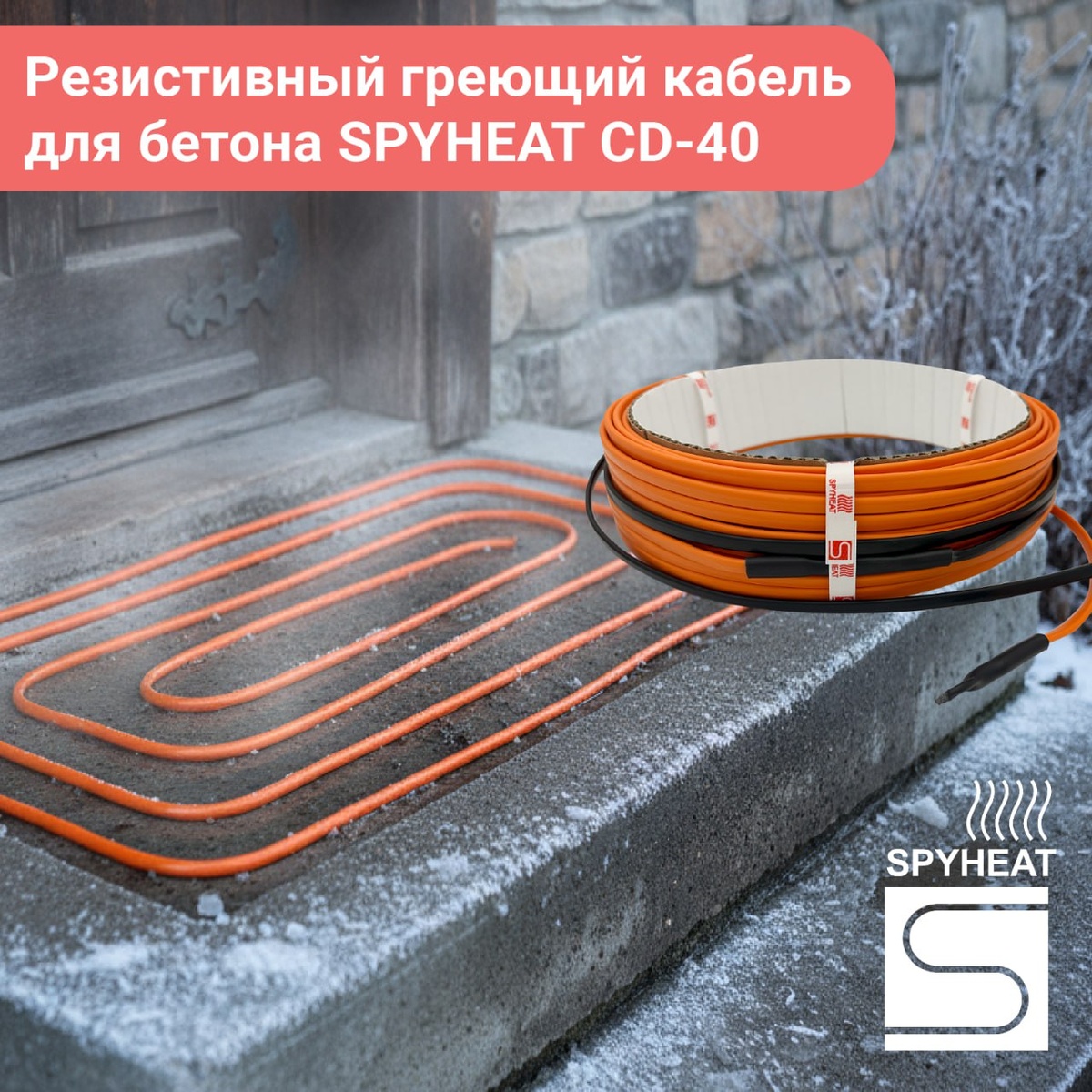 Резистивный греющий кабель является одним из наиболее распространённых типов кабелей, используемых для обогрева бетона при проведении работ в зимний период или при неблагоприятных климатических условиях. Его основное назначение — ускорение процессов гидратации цемента и обеспечение необходимых условий для быстрого набора прочности бетона. Резистивный кабель представляет собой обычный электрический проводник, способный преобразовывать электрическую энергию в тепловую. Когда ток проходит через этот проводник, выделяется определенное количество тепла, которое передается окружающему бетону. Основные преимущества резистивного кабеля SPYHEAT CD-40 — простая конструкция, постоянная высокая производительность по теплу, надежность и долговечность, легкость монтажа и обслуживания, а так же доступная цена! При монтаже кабеля важно соблюдать шаг укладки не меньше 10 см между витками. Нагревательная секция подключается напрямую к питающему напряжению 220 Вольт. А с терморегуляторами SPYHEAT работа