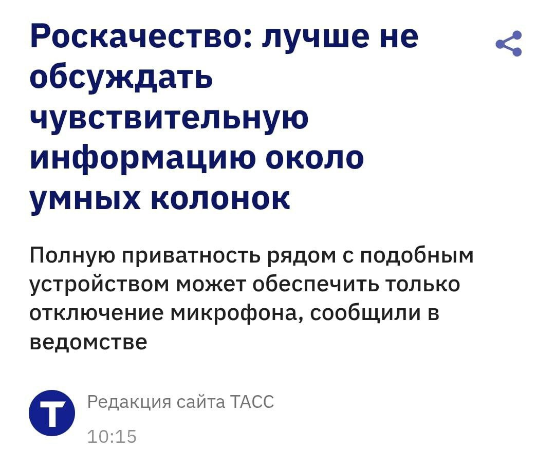 ❗️ Умные колонки следят за владельцами: Роскачество рекомендует не обсуждать личную информацию рядом с такими девайсами