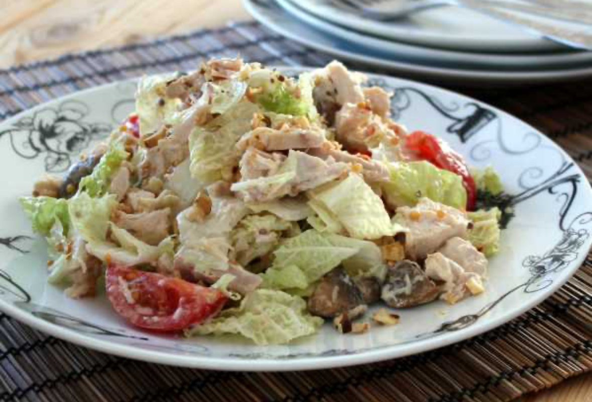 Салат с курицей с шампиньонами и помидорами . Лёгкий и вкусный салат. Готовится быстро и просто. 📖Нам понадобятся ⚜️Куриная грудка 1 шт ⚜️Пекинская капуста 1 кочан ⚜️Шампиньоны 10 шт ⚜️Помидоры 6 шт ⚜️Сыр 100 г ⚜️Майонез 4 ст. л ⚜️Зернистая горчица 1-2 ст.л ⚜️Лимонный сок 1 ст.л ⚜️Грецкий орех 1 горсть ⚜️Растительного масла для жарки ⚜️Соль перец по вкусу. Грудку отварить. Шампиньоны обжарить. Смешать все ингредиенты и заправить майонезом. Приятного аппетита. С уважением Наташина Кухня 🌹