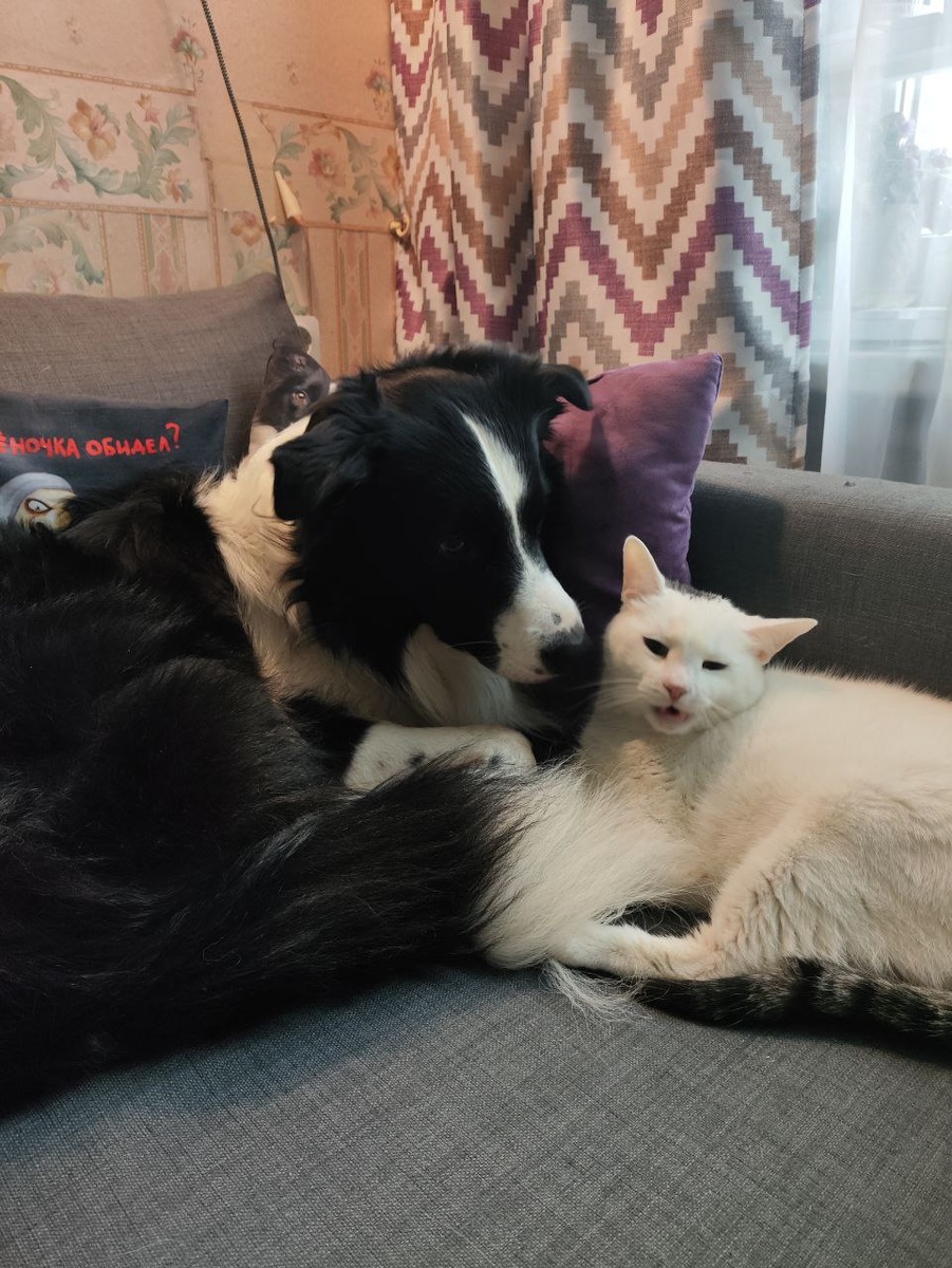 ‼️Внимание! В городе М орудует особо пушистая преступная группировка! Главарь: кот Позывной: Беляш Особые приметы: кот белый, хвост черный Подельник: пес Позывной: Нэш Особые приметы: ч/б бордер колли, красавчик Состав преступления: Вечером 12 ноября 2025 года, воспользовавшись тем, что двуногие отвлеклись, кот залез на стол, скинул собаке два куска колбасы, а третий ел сам Банда была поймана с поличным, у главаря изъят обкусанный кусок колбасы, у подельника изъять вещественные доказательства не удалось, т.к. они были моментально проглочены Последствия преступления в виде газовой атаки от пса не заставили себя ждать 😒 #Нэш #бордерколли #кот #Беляш