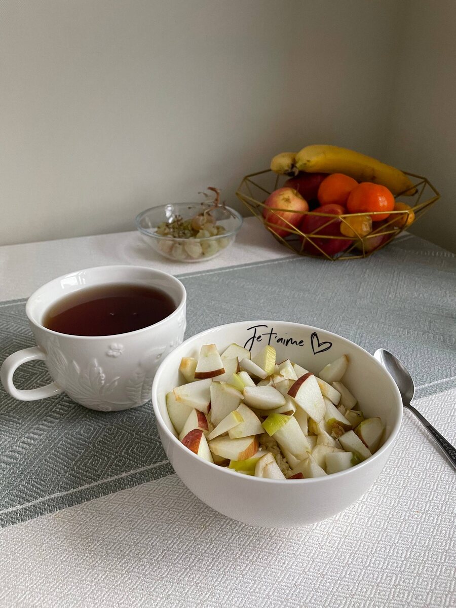 Вчера: на завтрак творожок с яблоком и чай с гостинцем из Тулы; на обед пиццу с курицей и сыром, 2 мандаринки; на ужин картофель с курицей с овощами и зеленью, чай с кусочком пряника, на перекус йогурт с хлебушком.