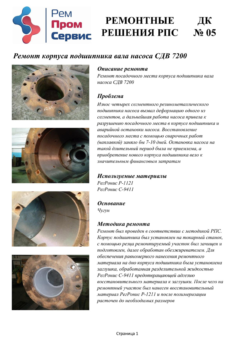 Ремонт корпуса подшипника вала насоса СДВ 7200