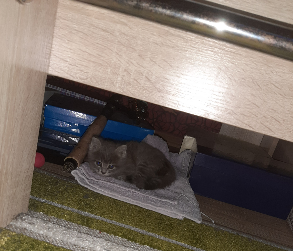 Дети, недолго думая, назвали котенка Смоки. Имя пришло само собой: серая шёрстка с едва заметными дымчатыми переливами так и просилась в ассоциацию с английским smoke — «дым». Первые дни Смоки в новом доме были полны осторожного любопытства. Он облюбовал пространство под кроватью — там, среди коробок с обувью, царили полумрак и тишина, а ещё пахло чем‑то неизведанным, но безопасным. Целую неделю котёнок неизменно устраивался на ночлег именно там, словно маленький серый призрак, прячущийся в тени. Видя, что под кроватью — его любимое убежище, я решила пойти на хитрость: купила очаровательный домик для кошек. Мягкий, с уютным входом и тёплой подстилкой внутри, он выглядел как идеальное место для кошачьего сна. Но Смоки, казалось, не оценил стараний. Внутри домика он не провёл ни одной ночи — будто сам принцип «домика» был ему чужд. Однако котёнок не игнорировал подарок полностью. Он нашёл ему своё, весьма оригинальное применение: каждую ночь устраивался… сверху! На крыше домика, вытяну