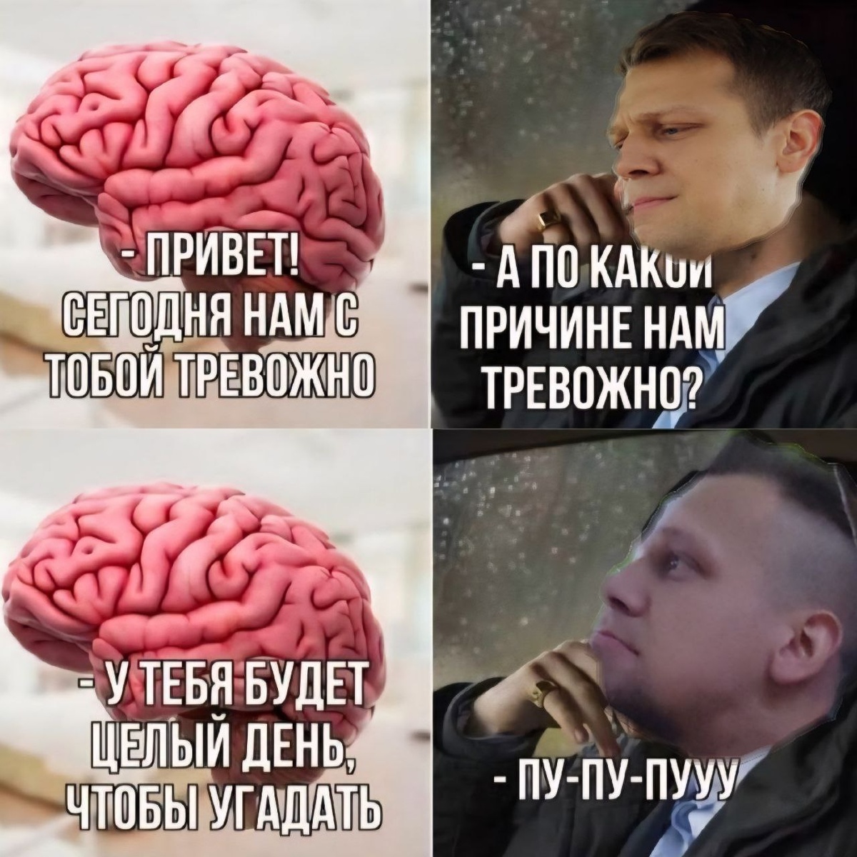 Обычно жёны призваны подбадривать, когда у мужа тревожный синдром. Любовь же моей жизни пилит мемасики🤣