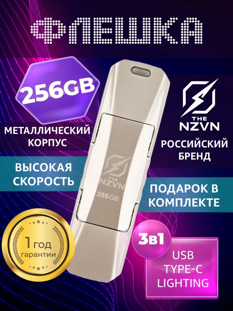 Флешка NZVN 3-в-1 256 ГБ – универсальный накопитель для всех устройств
