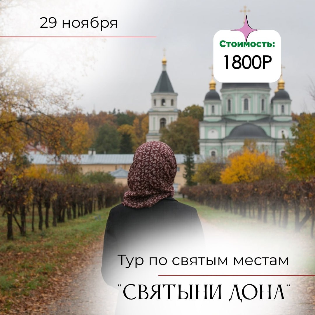 🍂Если вам знакомо желание всё бросить и сбежать подальше от шумного города, галдящего офиса и бытовых будней, отправляйтесь с нами в путешествие по святым местам. 🤩🤩🤩🤩Здесь вы 🤩🤩🤩🤩откроете 🤩🤩🤩🤩для себя новую 🤩🤩🤩🤩глубину русской культуры и насладитесь истинным покоем и благодатью. 🍁🍂🍂🍁🍂🍁🍁 🌸🌸🌸🍂🍁🍁🍂🌸🌸🌸 🍂Дата тура: 29 ноября 🍂Стоимость тура: 1800Р/чел. Мы с вами посетим удивительные места: 🍂 подворье Иверского монастыря в селе Петровка; 🍂 Живоносный источник; 🍂 х. Недвиговка, храм Успения Божий Матери; 🍂 с. Синявское, храм Всех Святых. 🌕🌖🌗🌘🌑🌒🌓🌔🌕 В стоимость входит: 🍂 Проезд в обе стороны 🍂 Транспортная и туристическая страховка 🍂 Экскурсия на протяжении всего маршрута 🍂 Чай на травах со сладостями ➡️ ➡️ПОДРОБНЕЕ НА САЙТЕ⬅️ ⬅️ Связаться с нами: WhatsApp/Телеграм: 8-951-528-23-91 Мы в MAX: https://max.ru/tripRND