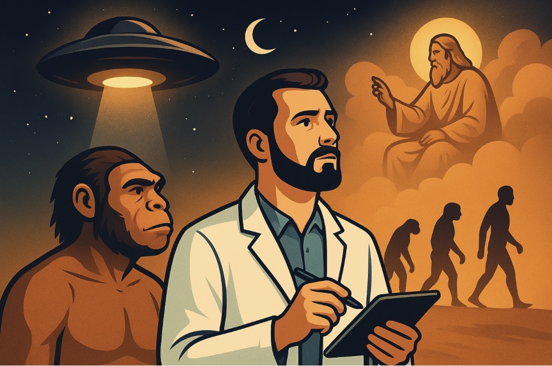 Теория Дарвина уже более века считается краеугольным камнем биологии. Мы привыкли думать, что человек — результат длинной цепочки эволюции, в которой случайные мутации и естественный отбор постепенно превратили приматов в нас. Всё логично, научно, убедительно. Но есть и другой, куда более интригующий взгляд на происхождение человечества. Что, если мы — вовсе не продукт природы, а результат эксперимента высокоразвитой внеземной цивилизации? Эксперимент, изменивший планету Представим, что миллионы лет назад на Землю прибыли «гости» с другой планеты. Возможно, исследователи, возможно, создатели. Они нашли на Земле примитивных, но перспективных существ — наших далеких предков-приматов — и решили провести эксперимент. С помощью генной инженерии (возможно, на уровне, который нам даже трудно вообразить) они ускорили процесс эволюции. Изменили ДНК, вложили способность к речи, абстрактному мышлению, эмоциям и, главное, к обучению. Так появился человек разумный. Первые поколения, быть может, д