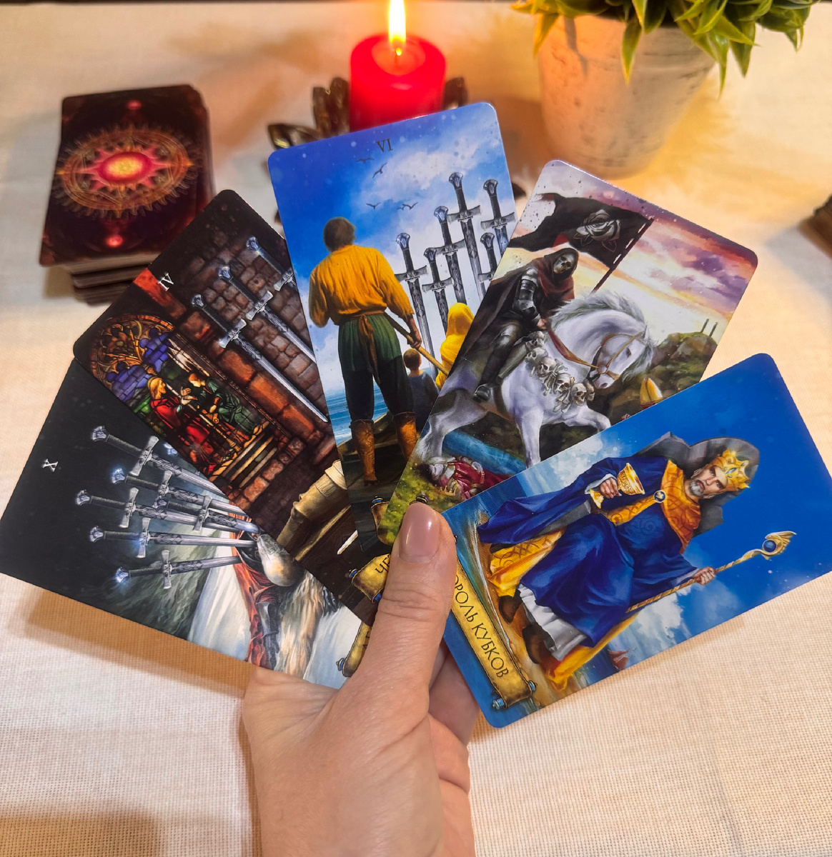 📌 Связка №1: Анатомия Кризиса (Десятка Мечей + Четверка Мечей + Шестерка Мечей)