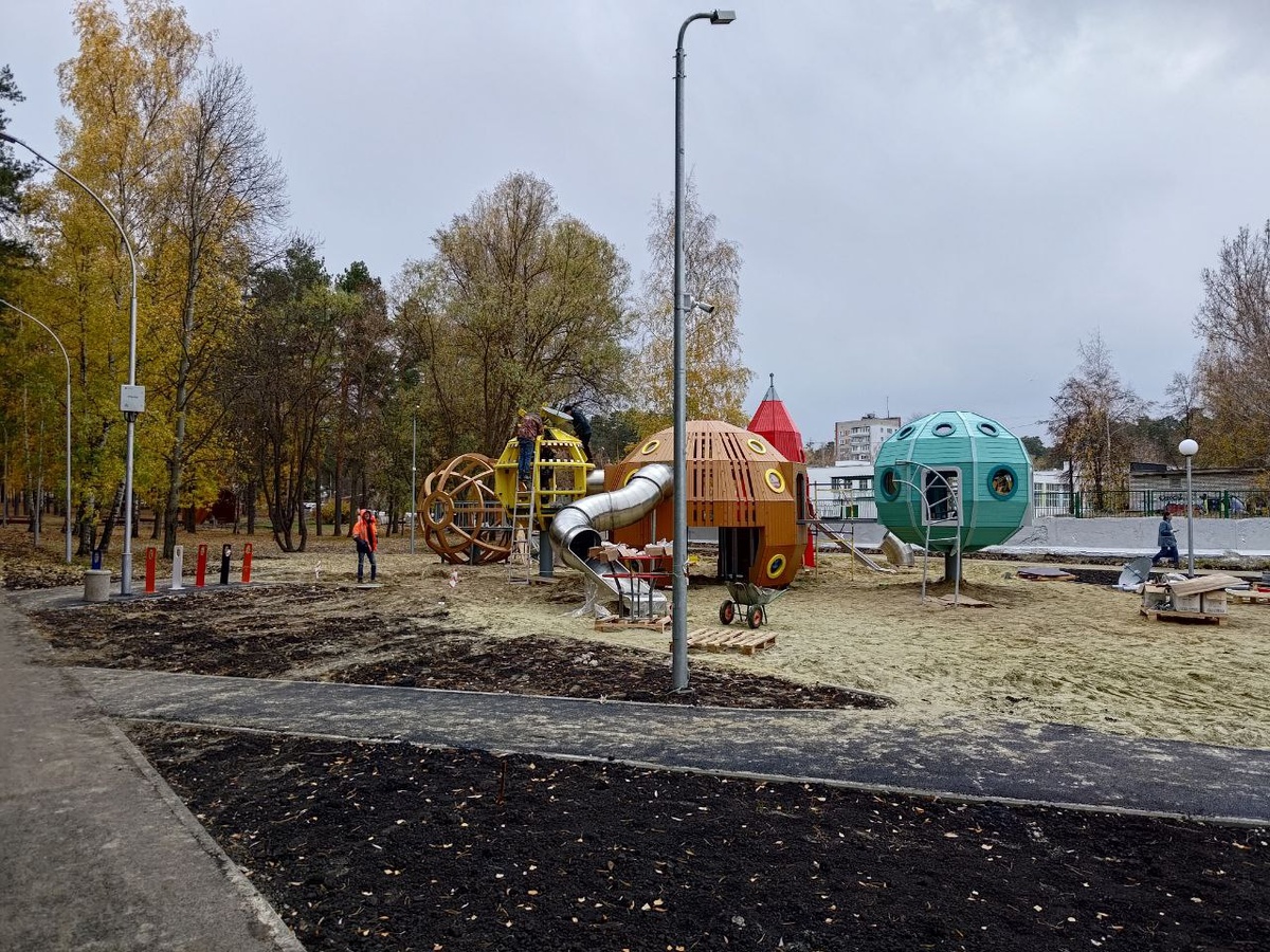 В сквере Демакова в Заречном установили арт-объекты в виде ракеты и планет