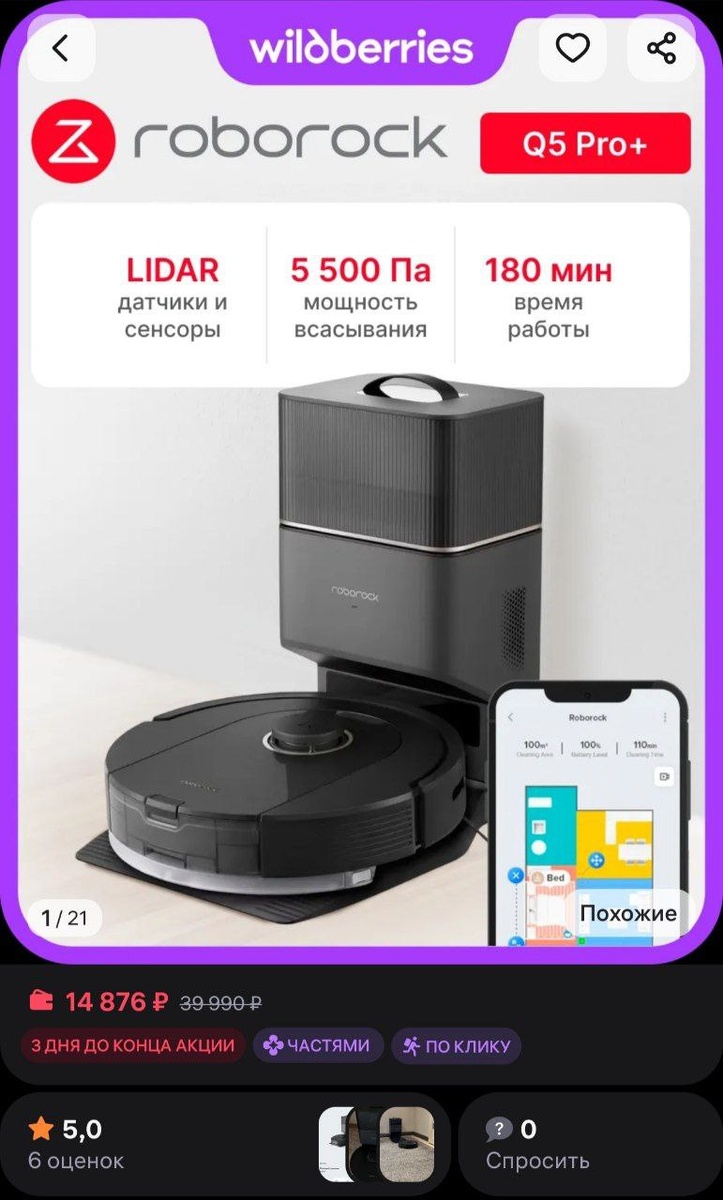 🔥Робот-пылесос Roborock Q5 Pro Plus roborock за 14876₽